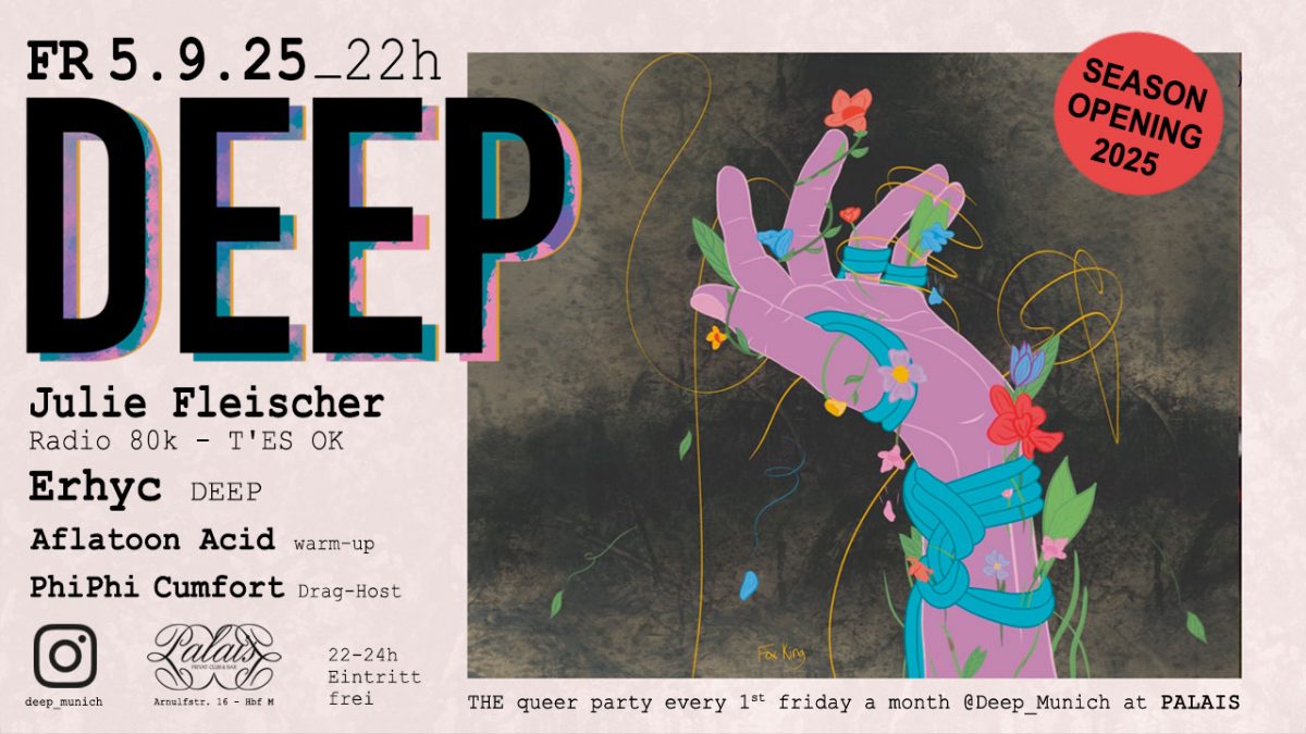 Das BERGFEST bietet jeden ersten Mittwoch im Monat beste Voraussetzungen, schon am Mittwoch den Gipfel des Glücks erstürmen – und heute sogar mit ordentlich Rückenwind Richtung letztes Wiesn-Wochende. Im Februar 2025 hat Pablo, unser running Chef-Stewart, das Bergfest aus der Taufe gehoben, um “seine” Palais-Family & Friends und all die, die den magischen Mikro-Kosmos des Palais noch nicht kennen, um sich zu scharen. Bei der Oktober-Ausgabe wird’s auch wieder familiär zugehen, auch deshalb, weil sich wieder viele Palais-Eigengewächse in der DJ-Kanzel abwechseln.