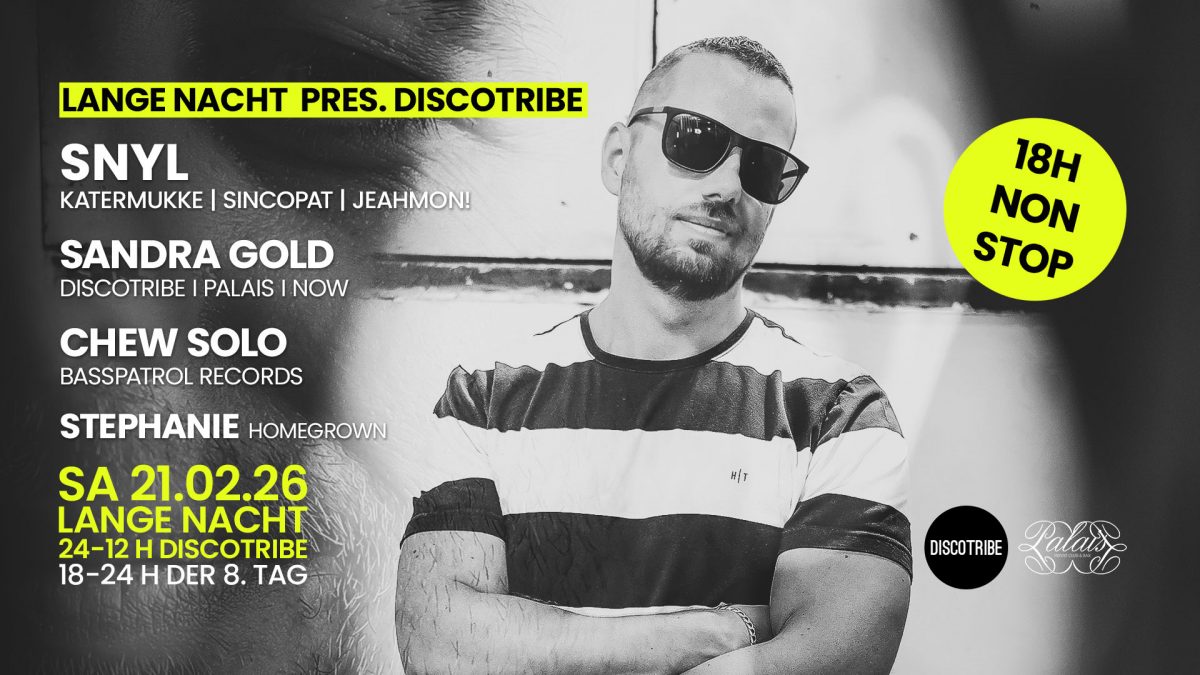 Nach dem mitternächtlichen Klinkenstecker-Wechsel geht’s nahtlos weiter mit der Discotribe-Night von unserer Residentin Sandra Gold, die sich den Budapester DJ SNYL, ihren langjährigen Begleiter und Basspatrol-Botschafter Chew Solo sowie die hochtalentierte Stephanie aus dem Musicversity-Umfeld von DJ Linus an die Seite holt. Auf den ungarischen Gast SNYL, der immerhin knapp 30.000 Hörer auf Spotify begeistert, wollen wir etwas näher eingehen.