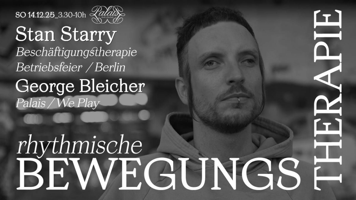 Bevor am 3. Advent daheim wieder die Plätzchen- und Lebkuchen-Verführung lockt, bitten wir frühmorgens lieber zur rhythmischen Bewegungstherapie mit den taktvollen Instruktoren George Bleicher und Stan Starry. Ersterer hat ja bei seiner We-Play-Party im November im Palais eine Doppelschicht einlegen müssen, weil Gunnar Stiller kurzfristig ausgefallen ist. Aber das längere Set hat George Bleicher natürlich mit Bravour gemeistert und wir sind schon ganz heiß, was er uns diesmal alles auftischen wird.