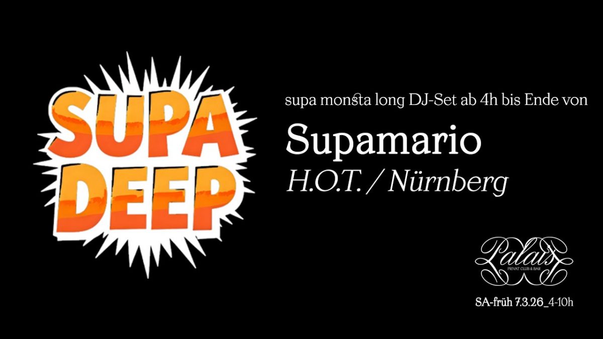 Wer nach unserer vergnüglichen DEEP-Revue die Nacht verständlicherweise noch nicht enden lassen möchte, darf sich ab 4 Uhr auf ein knackiges 6-Stunden-Set von DJ Supamario freuen. Der hotte Nürnberger, der uns schon seit vielen Jahren regelmäßig beehrt, wird supa-deep in seine breite Kollektion elektronischer Perlen eintauchen und viel Feines zutage fördern. In den letzten Wochen und Monaten war er wieder überaus aktiv auf seinem Soundcloud-Profil, dort könnt ihr euch also schon mal wunderbar einstimmen.