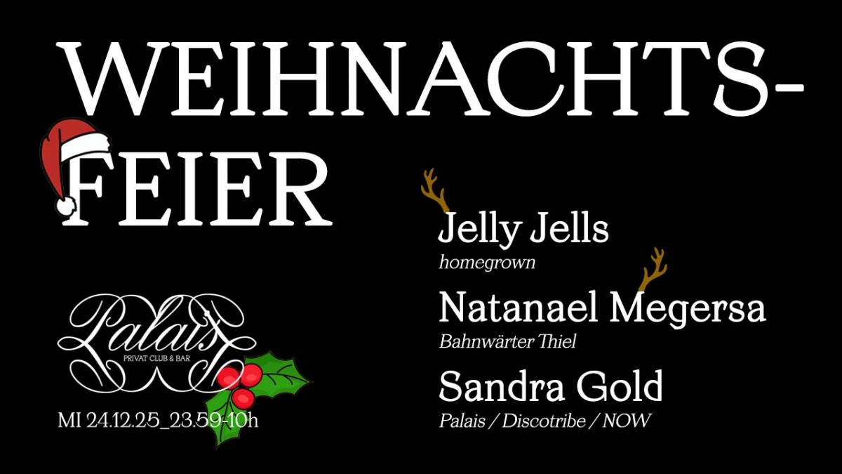 Und was hat euch das Christkind beschert? Falls ihr noch nicht vollends beglückt seid, bescheren wir euch zum Ausklang des Heiligen Abends mit einer wundervollen Weihnachtsfeier. Aus gegebenem Anlass wartet schon unten am Eingang feiner Glühwein auf euch, und oben dann auf den Tischen und an den Bars reichlich Weihnachtsgebäck. Musikalisch gibt’s natürlich nicht unbedingt “Jingle Bells”, sondern Jelly Jells, Natanael Megersa und Sandra Gold in der DJ-Kanzel. Oder vielleicht doch “Jingle Bells”? Denn die DJs sind darauf gepolt, tief in ihrer Zauberkiste zu graben, um in ihren Sets Weihnachten als musikalisches Thema mit einzubauen. Der ein oder andere Weihnachtssong in einer Remix-Version oder auch im Original, beispielsweise bei der Wachablösung, dürfte also aus den Boxen perlen.